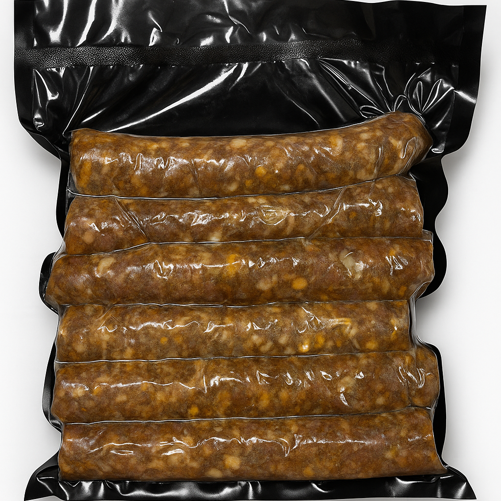 Jalapeño Cheddar: Our Jalapeño Cheddar Sausage packs a bold kick of spicy jalapeños balanced with smooth, melty cheddar cheese!